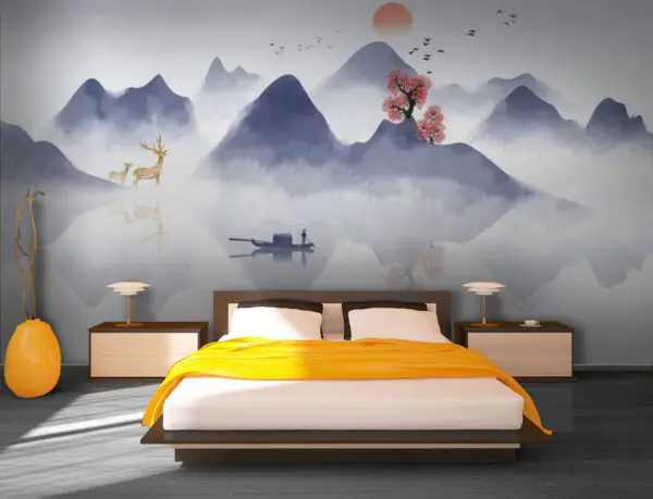 £13.75£8.25Wall murals Painting of a boat on a mountain with trees and mountains in the background
