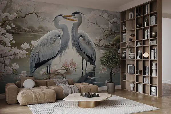 £13.75£8.25Wall murals Couple of white birds standing in water with pink flowers