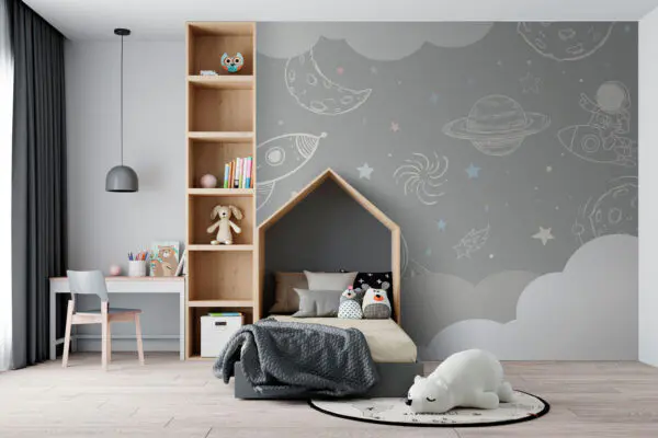 £14.25£7.84Wall murals Grey background with clouds and rockets