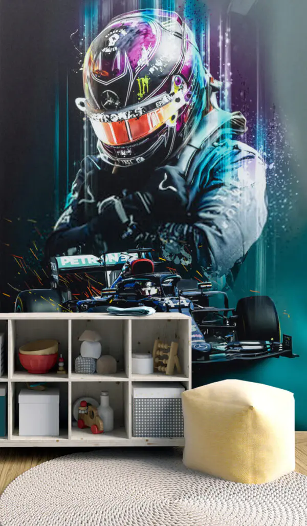 £13.75£8.25Wall murals Person wearing a helmet and holding a race car