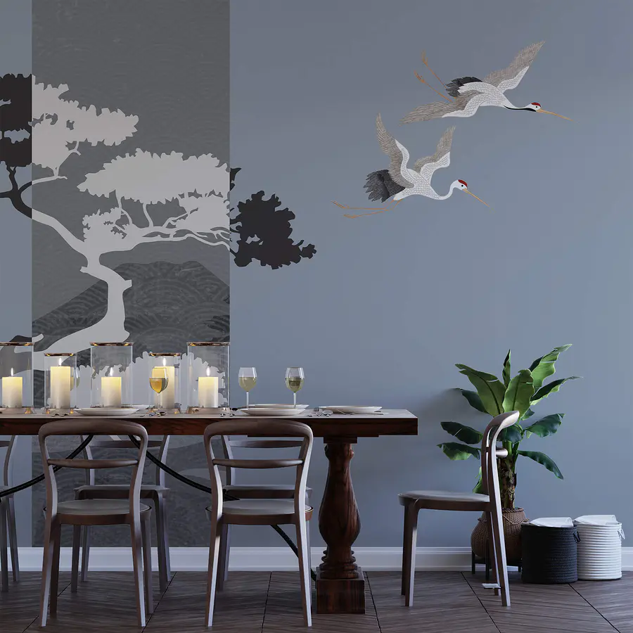 Wall murals Couple of cranes flying next to a tree
