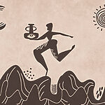Wall murals Drawing of a man holding a pot and a pot on a mountain