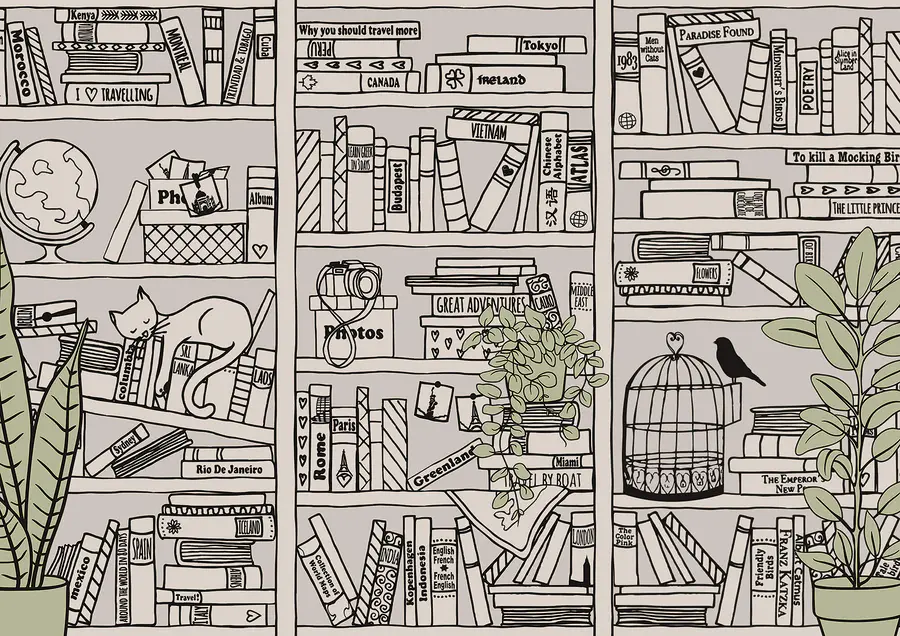 Wall murals Wallpaper with books on shelves