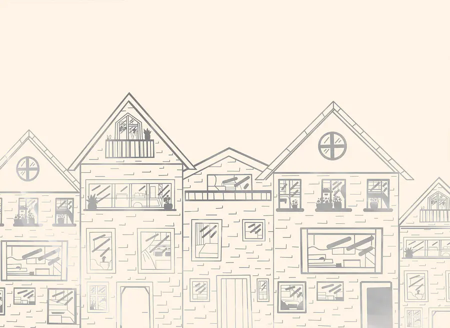 Wall murals Drawing of a row of houses