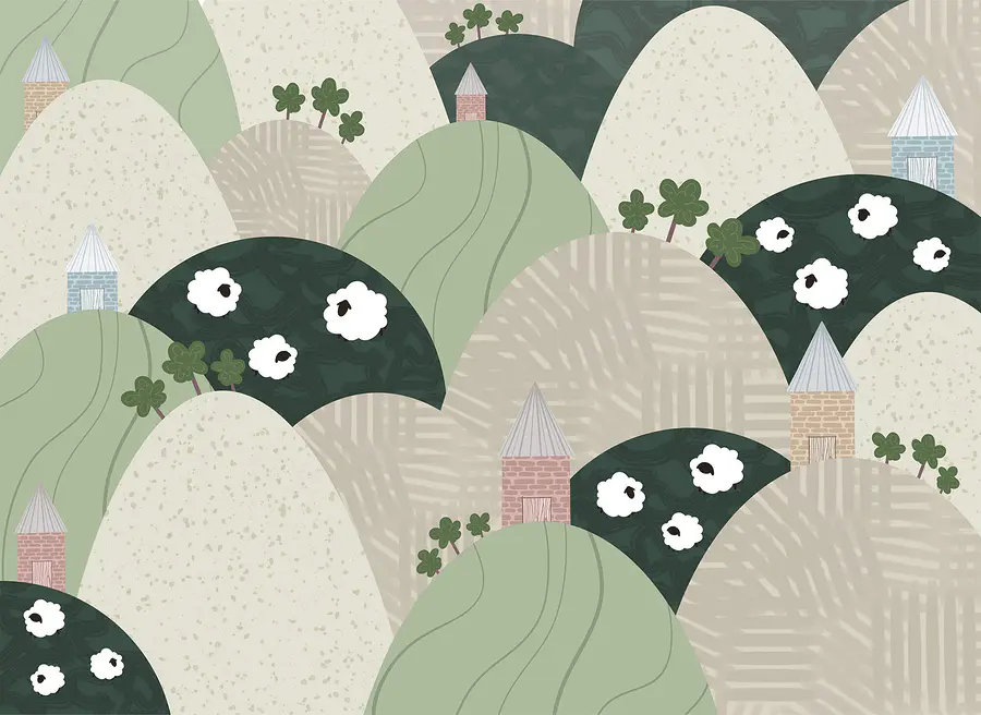 Wall murals Landscape with hills and flowers