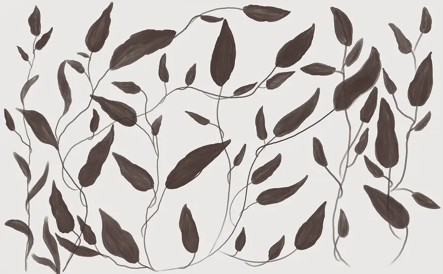 Wall murals Drawing of leaves on a white background