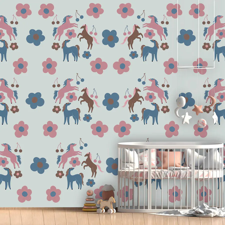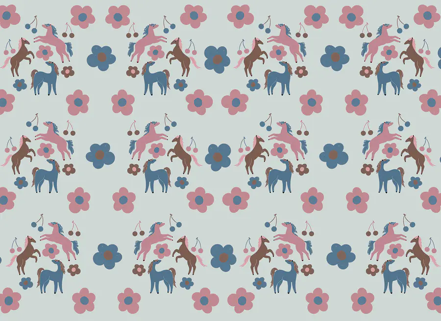 Wall murals Pattern of horses and flowers
