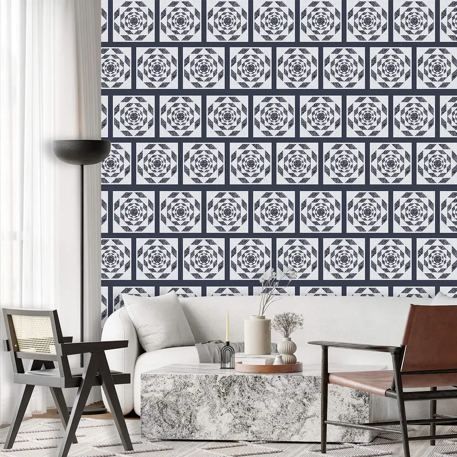Wall murals Pattern of squares and a pattern of a flower