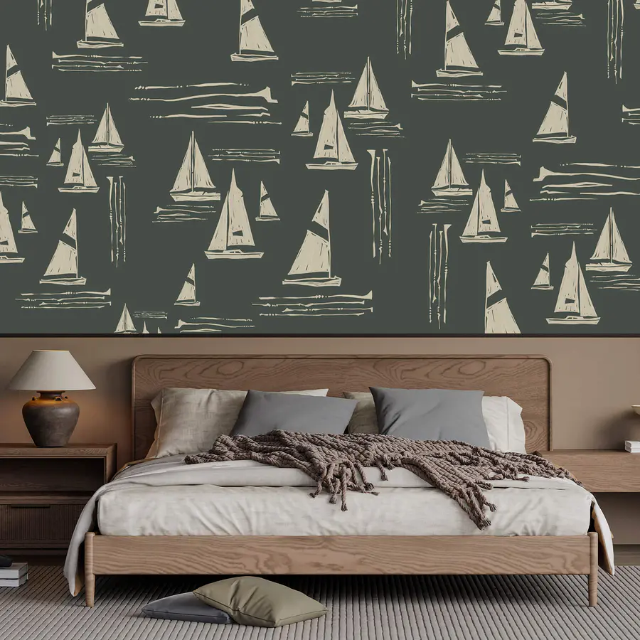 Wall murals Pattern of sailboats on a dark background