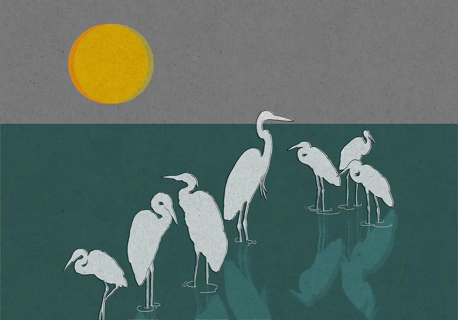 Wall murals Group of birds standing in water