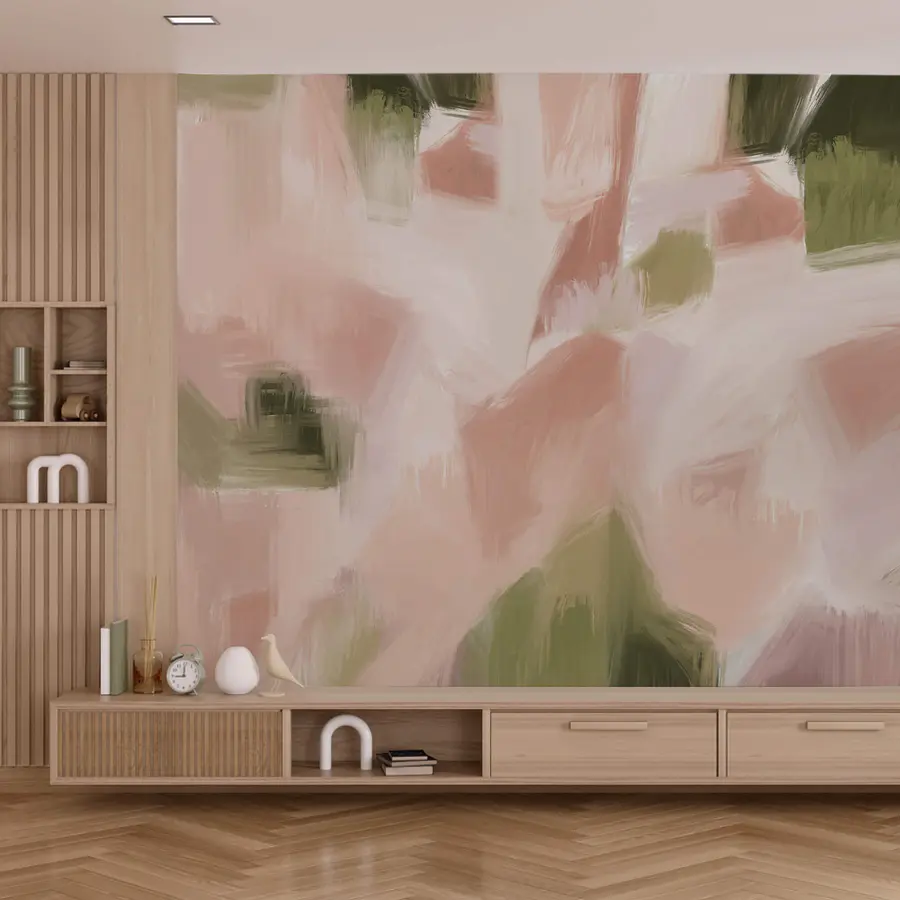 Wall murals Painting of a pink and green background