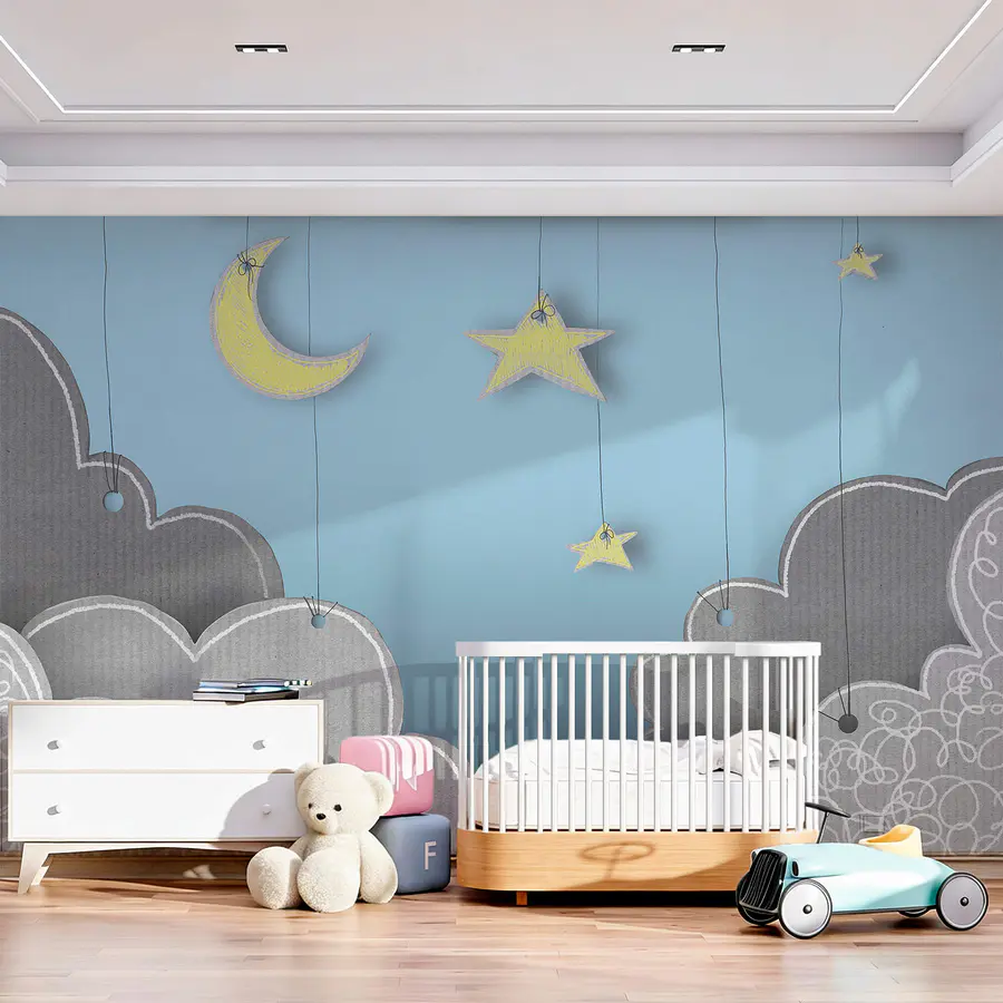 Wall murals Moon and stars from clouds
