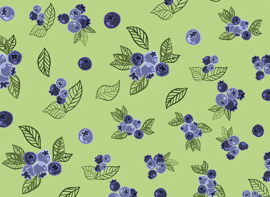 Wall mural Pattern of blueberries and leaves