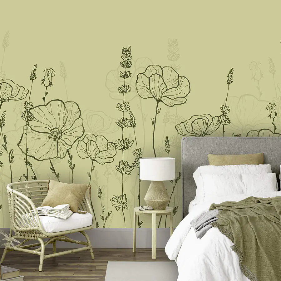 Wall mural Line drawing of flowers