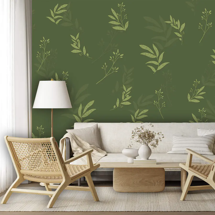 Wall mural Pattern of leaves on a green background
