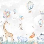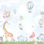 Wall murals Watercolor of animals and balloons