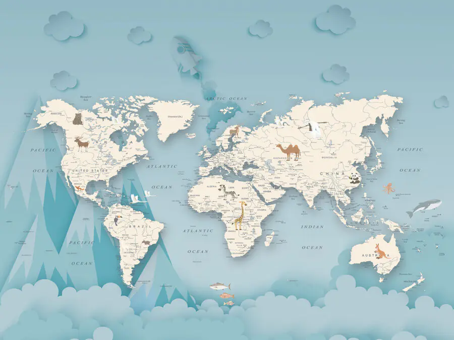 £13.07£7.84Wall murals Map of the world with animals and birds