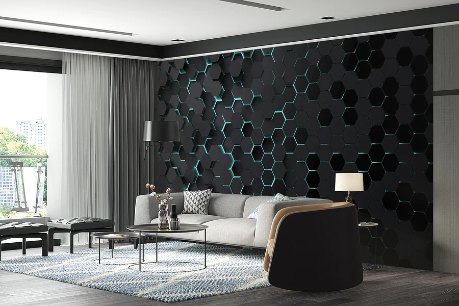 Wall murals Black hexagons with blue lights