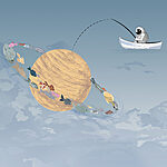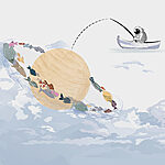 Wall murals Cartoon of a man fishing in a boat in the sky