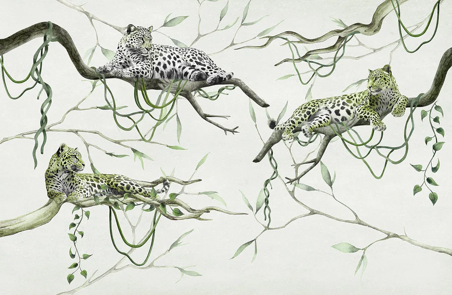 Wall murals Group of leopards lying on branches
