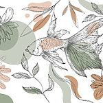 Wall murals Fish and plants on a white background