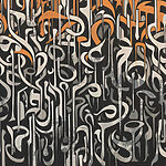 Wall murals Black and white art with orange and white lines