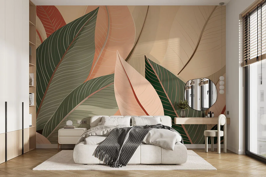 Wall murals Natural hues of layered leaves