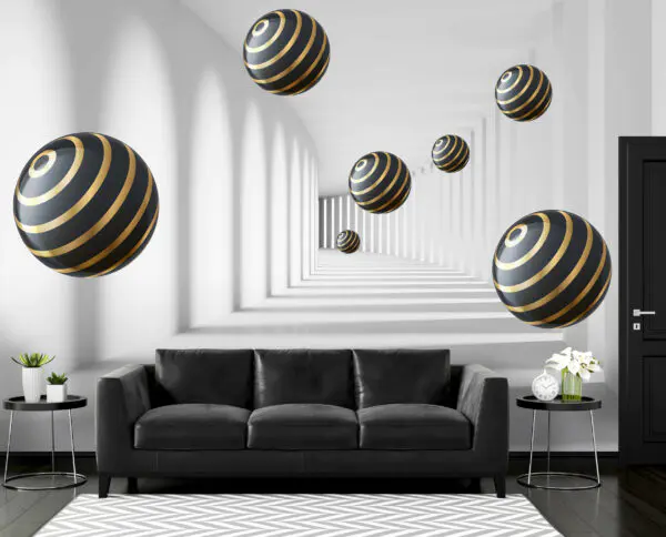 £13.75£8.25Wall murals Striped spheres float in white corridor