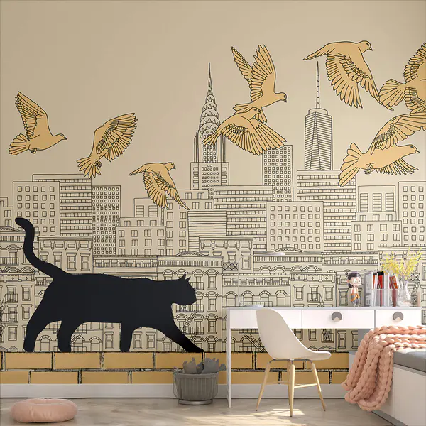 £13.75£8.25Wall murals Cat walking on a wall with birds flying in the sky