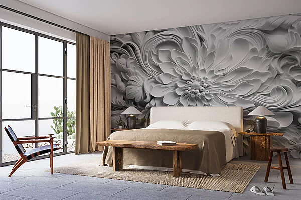 £13.75£8.25Wall mural White wall with flowers and leaves